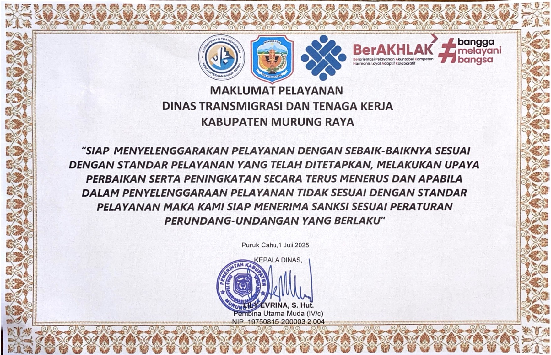 Selamat Datang Di Website Resmi Dinas Transmigrasi dan Tenaga Kerja Kabupaten Murung Raya